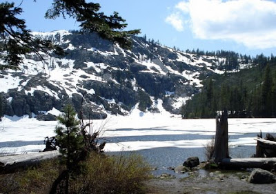 THE LAKE WAS STILL MOSTLY ICE COVERED.