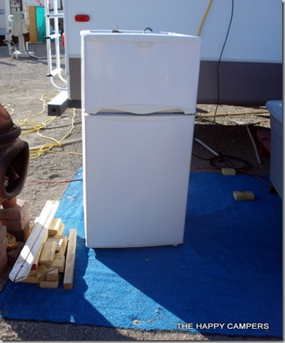 ANTICIPATING ANOTHER SUMMER ON THE DESERT, BECAUSE THE CASINO BUSINESS IN NEVADA JUST HASN’T HIT THE BOTTOM YET, WE BOUGHT THIS USED FRIDGE WITH A FREEZER ON TOP.