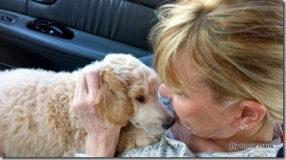 .......the breeder is interesting. They are a couple that adopts children that "don't fit in well" with social problems. Years ago, one of the kids had a therapist that used a therapy dog, a Standard Poodle. They were so impressed with the effectiveness of the dog that they decided to start breeding, figuring they could make some money AND do therapy for the kids at the same time. Now, every kid has a dog (or two).